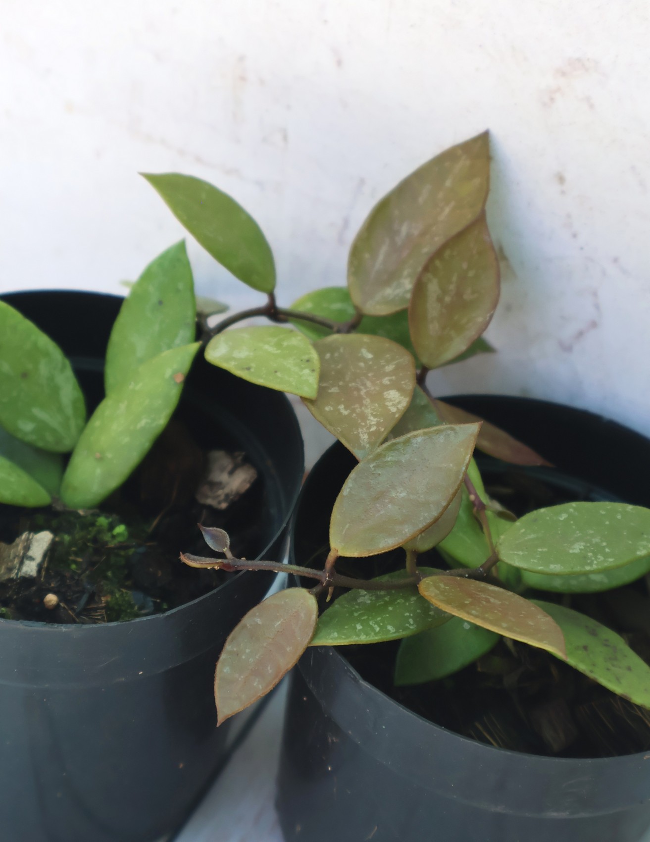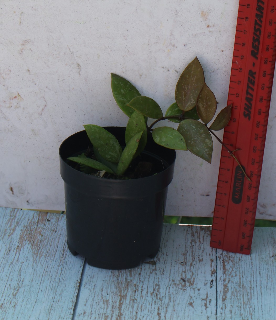 A pretty and free flowering hoya. Small speckled, slightly hairy leaves with pinkish new growth and leaves in bright light. Flowers are delicate red-pink and fragrant.