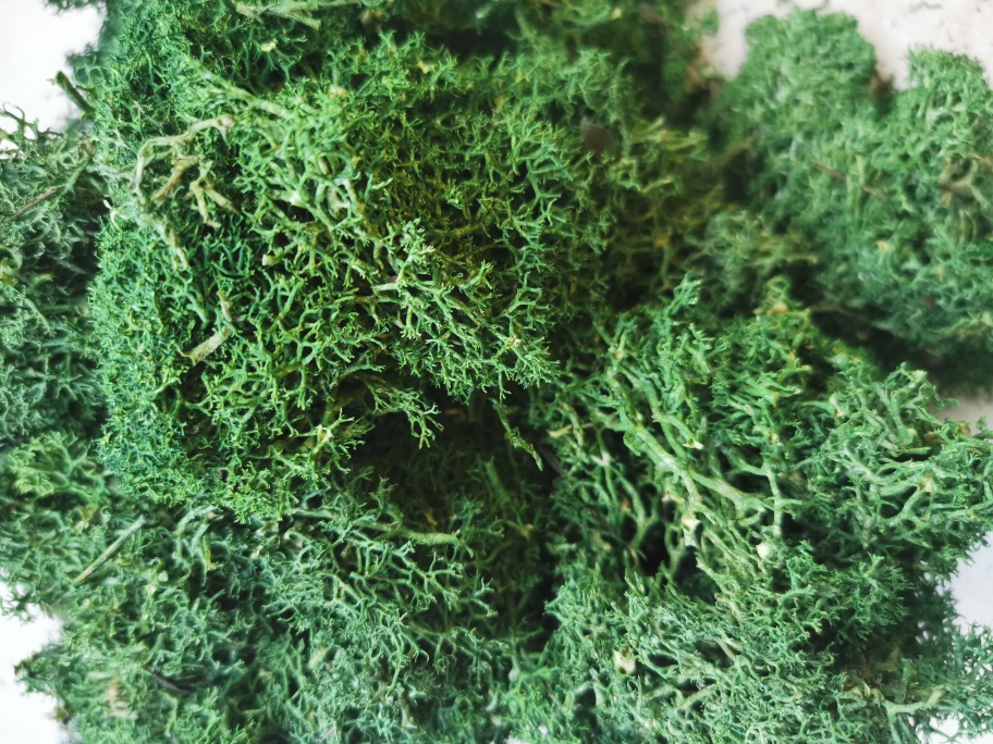 Reindeer moss is a lichen that grows in Lapland (and is a favourite snack for reindeers) The moss is completely natural and has undergone a natural preservation process to stabilise it and is then dyed with natural pigments. The moss will not grow anymore and does not need any water or sunlight. To ensure it keeps its wonderful soft texture, it is recommended to be utilised in a space with approximately 40% humidity or give it s quick spritz every so often.